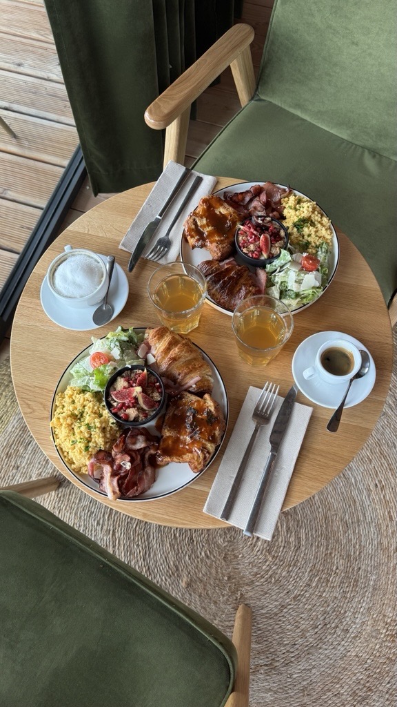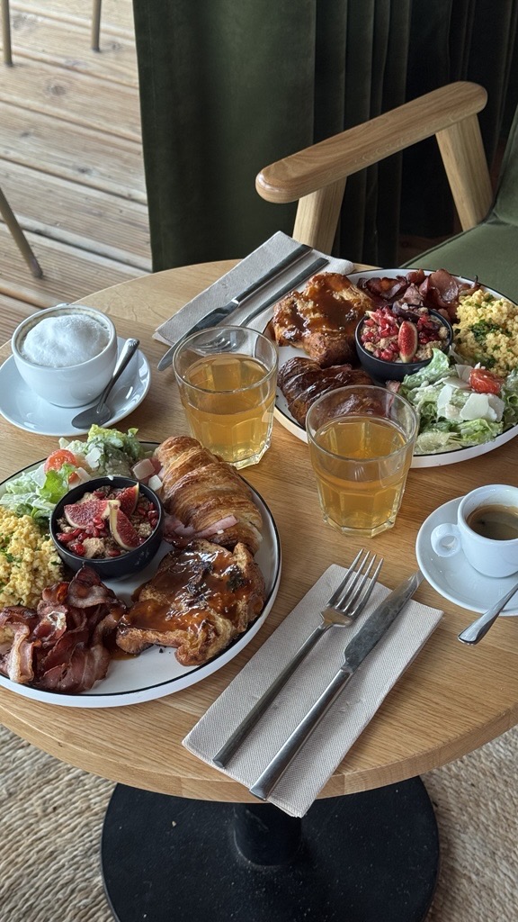 Une belle assiette généreuse, accompagnée d’une boisson chaude au choix et d’un jus de pomme artisanal de la Ferme de Gally. La carte déjeuner habituelle reste disponible : chacun choisit selon ses envies, brunch ou plats à la carte !