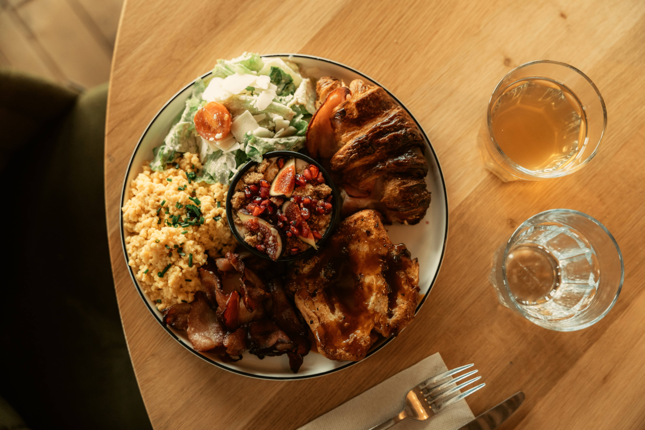 A generous platter accompanied by a hot drink of your choice and artisanal apple juice from Ferme de Gally. The usual lunch menu is still available: choose whatever you fancy, brunch or à la carte dishes!