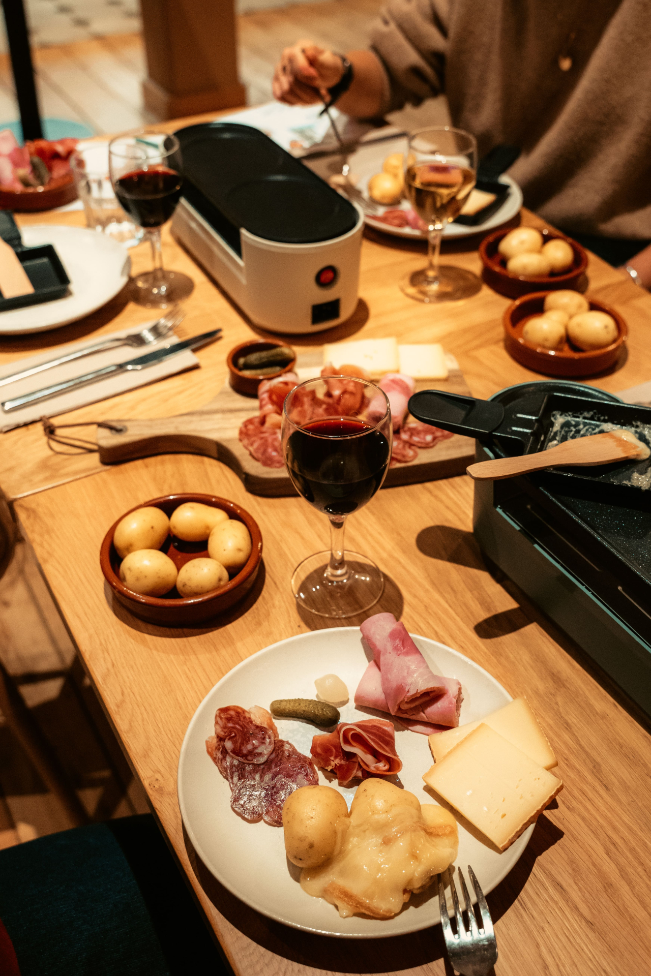 Raclette platter (1 or 2 people) – Cheese, charcuterie, salad, and pickles